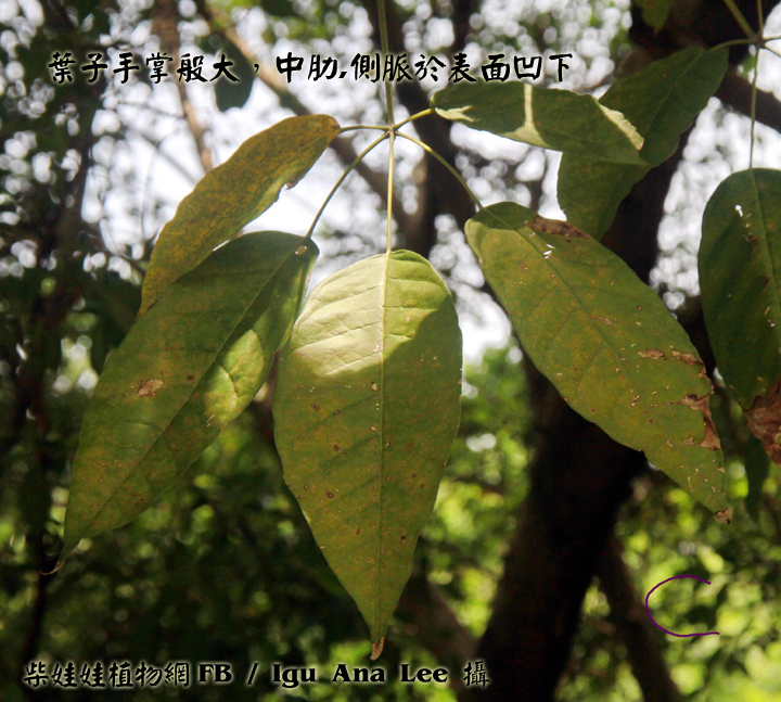 | 特別特徵: | 三長兩短掌狀複葉對生 |