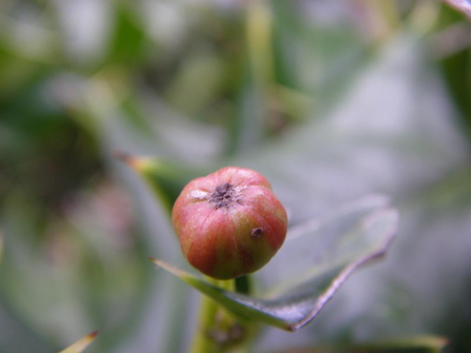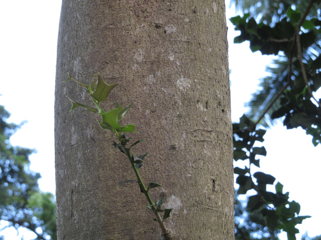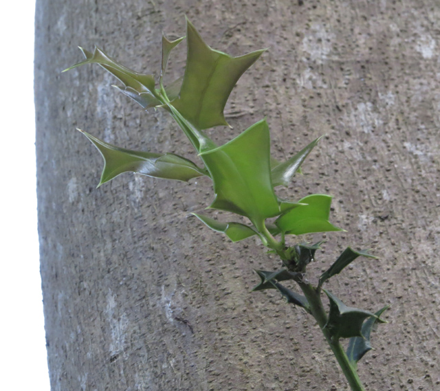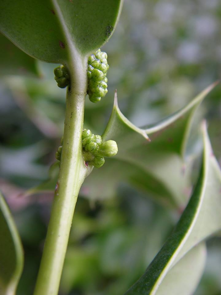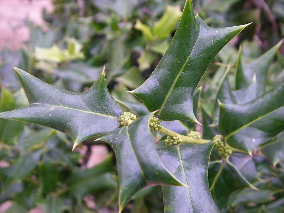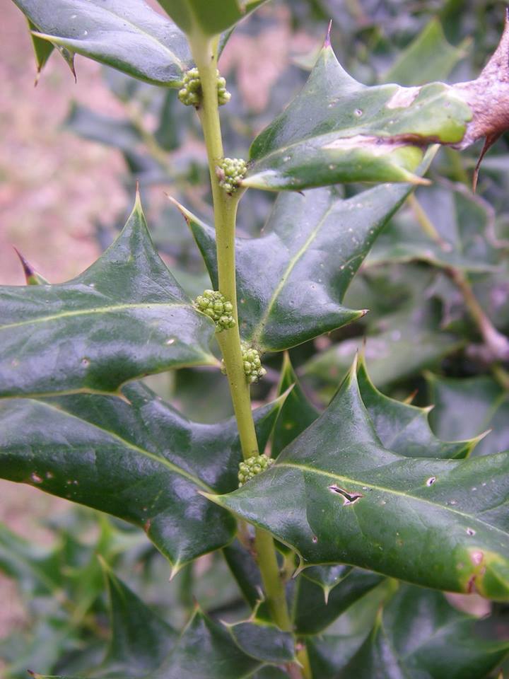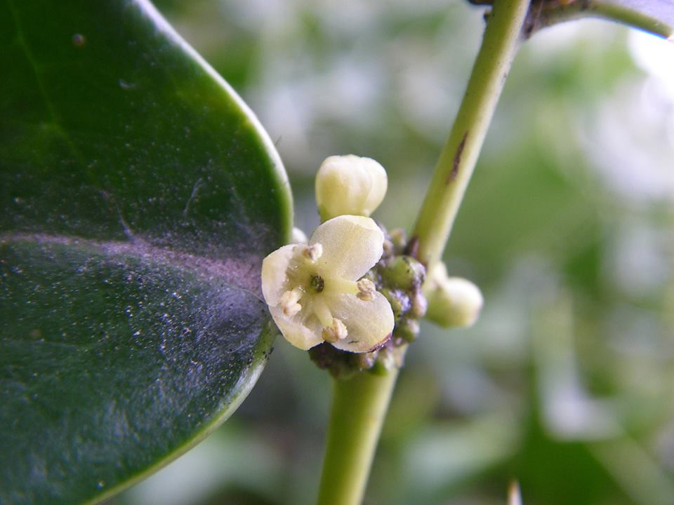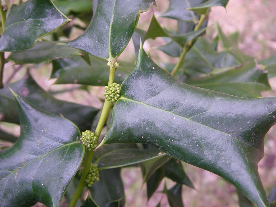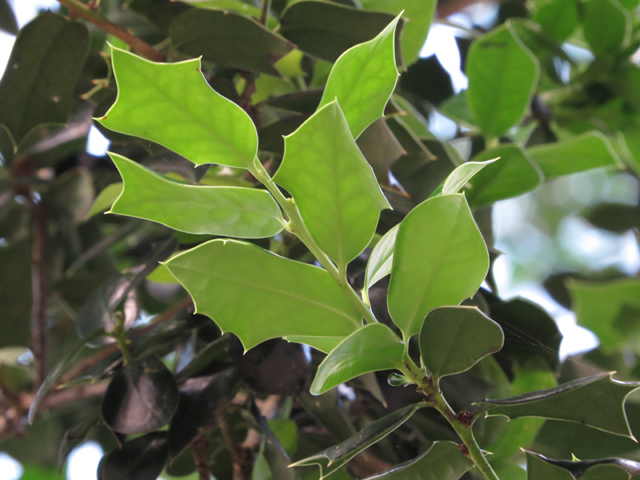 | 備註: Fruit taken from United Kingdom FoHK Evergreen shrub or small tree, 1–3 m high; branchlets stout, subterete, minutely puberulent or glabrescent. Leaves thick-leathery; petioles 4–8 mm, puberulent; leaf blade quadrangular-oblong, rarely ovate, 5–6 × 2.5–3 cm, base rounded or sub-truncate; apex acute or shortly acuminate, always with 3 spines; margin entire or sinuate, with 1–3 spines on each side, dark green and shining adaxially, paler abaxially. Inflorescences fasciculate, sessile, axillary, on second year’s growth, branches of the fascicles uniflowered; flowers 4-merous. Staminate pedicels 5–6 mm long; calyx patelliform, 2.5 mm across, sparsely puberulent, ciliate; corolla rotate, 7 mm across, petals connate at base; stamens subequaling the petals, anthers ovoid-oblong; rudimentary ovary subglobose. Pistillate pedicels 8 – 9 mm long, after fruiting 13– 14 mm long; calyx patelliform, lobes obtuse, ciliate; corolla rotate, 7 mm across, petals sparsely ciliate; staminodes short; ovary oblong-ovoid, stigma discoid. Fruit globose 8–10 mm in diam., stigma discoid. Pyrenes 4, 7–8 × 5 mm, wrinkled-pitted, rugose all over. 中國植物誌 常綠灌木或小喬木,高(0.6-)1-3米;幼枝具縱脊及溝,溝內被微柔毛或變無毛,二年枝褐色,三年生枝灰白色,具縱裂縫及隆起的葉痕,無皮孔。葉片厚革質,二型,四角狀長圓形或卵形,長4-9厘米,寬2-4厘米,先端具3枚尖硬刺齒,中央刺齒常反曲,基部圓形或近截形,兩側各具1-2刺齒,有時全緣(此情況常出現在卵形葉),葉面深綠色,具光澤,背淡綠色,無光澤,兩面無毛,主脈在上面凹下,背面隆起,側脈5或6對,於葉緣附近網結,在葉面不明顯,在背面凸起,網狀脈兩面不明顯;葉柄長4-8毫米,上面具狹溝,被微柔毛;托葉胼胝質,寬三角形。花序簇生於二年生枝的葉腋內,基部宿存鱗片近圓形,被柔毛,具緣毛;苞片卵形,先端鈍或具短尖頭,被短柔毛和緣毛;花淡黃色, 4基數。雄花;花梗長5-6毫米,無毛,基部具1-2枚闊三角形的小苞片;花萼盤狀;直徑約2.5毫米,裂片膜質,闊三角形,長約0.7毫米,寬約1.5毫米,疏被微柔毛,具緣毛;花冠輻狀,直徑約7毫米,花瓣長圓狀卵形,長3-4毫米,反折,基部合生;雄蕊與花瓣近等長或稍長,花藥長圓狀卵形,長約1毫米;退化子房近球形,先端鈍或圓形,不明顯的4裂。雌花:花梗長8-9毫米,果期長達13-14毫米,無毛,基部具2枚小的闊三角形苞片;花萼與花瓣像雄花;退化雄蕊長為花瓣的4/5,略長於子房,敗育花藥卵狀箭頭形;子房長圓狀卵球形,長3-4毫米,直徑2毫米,柱頭盤狀,4淺裂。果球形,直徑8-10毫米,成熟時鮮紅色,基部具四角形宿存花萼,頂端宿存柱頭盤狀,明顯4裂;果梗長8-14毫米。分核4,輪廓倒卵形或橢圓形,長7-8毫米,背部寬約5毫米,遍布皺紋和皺紋狀紋孔,背部中央具1縱溝,內果皮骨質。花期4-5月,果期10-12月。 本種之樹形美麗,果實秋冬紅色,掛於枝頭,與歐洲之聖誕樹Ilex aquifolium L. 可以媲美並代替供庭園觀賞。 | |