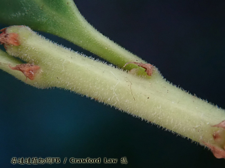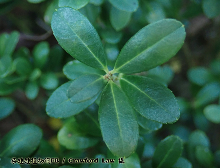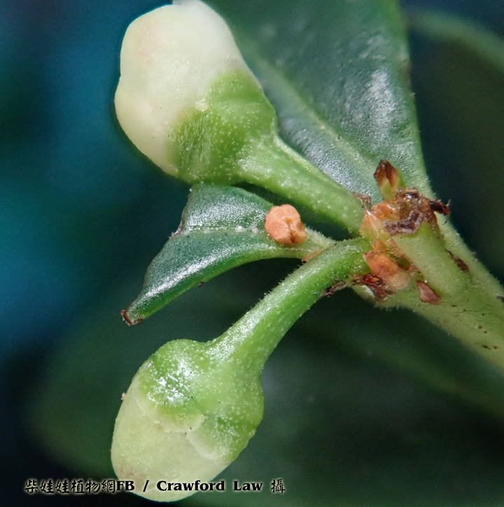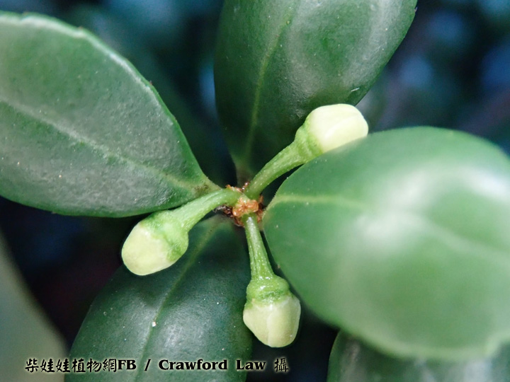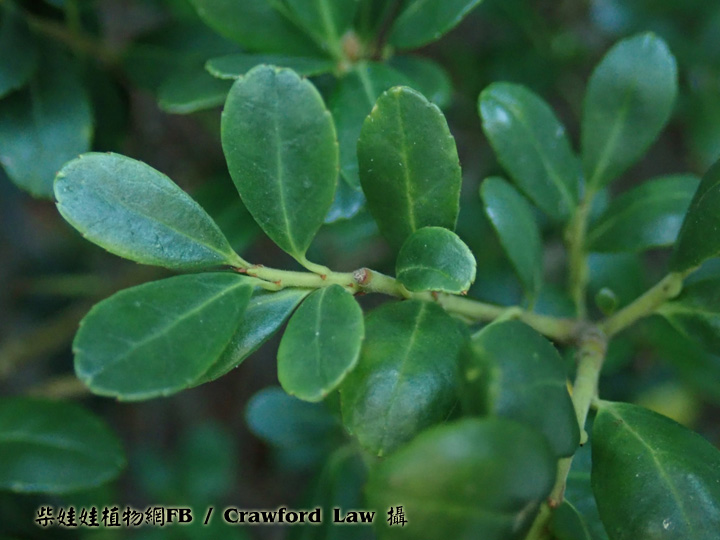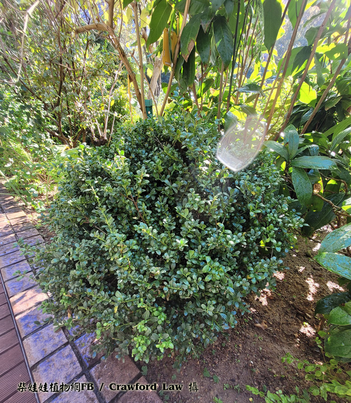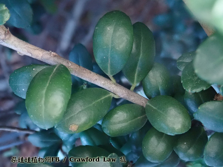 | 備註: Ilex 冬青屬 section Paltoria 矮冬青組 I. crenata #齒葉冬青 親緣上比較相近有 台灣的I. maximowicziana #倒卵葉冬青 跟大家熟悉的 I. viridis #綠冬青,葉背的深色腺點所以是其中重要辨識特徵之一。跟同組同系的物種比較的話,齒葉冬青的葉明顯比較細塊。齒葉冬青其實有不少forma 型 跟 cultivator 栽培種,其中一種就是塊葉會拱起的I. crenata f. convexa 龜甲冬青,相當特別的一個品種。 常綠灌木。 幼枝具縱棱,密被短柔毛; 托葉鑽形,微小; 葉柄2-3mm,具短柔毛; 葉片倒卵形,橢圓形的,或長圓狀橢圓形的, 1-3.5 x 0.5-1.5 cm,革質,背面無毛,密被深色腺點, 除了在中脈上正面無毛, 中脈正面平或者稍凹陷,具短柔毛,側脈3-5 對,不明顯,基部鈍或楔形,邊緣圓齒狀鋸齒,先端圓鈍或近尖。 雌花單花,或2-3花組成聚傘花序生於當年生枝的葉腋內;花梗長3.5-6mm,向頂端稍增粗,具縱棱,近中部具1或2枚小苞片;花4基數,花萼直徑約3mm,4裂,裂片圓形;花冠直徑約6mm,花瓣卵形,長約3mm,基部合生;退化雄蕊長為花瓣的1/2,不育花藥箭頭形;子房卵球形,長約2mm,柱頭盤狀,4裂。 參考: Hu, S. (1949). THE GENUS ILEX IN CHINA. Journal of the Arnold Arboretum, 30(3), 233–344. Link1 | Link2 ref.photos FOHK: Evergreen shrub, up to 2 m high; branchlets puberulous. Leaves leathery; stipules subulate, persistent; petioles short, 2– 3 mm; leaf blade obovate, ovate or oblong-elliptic, 1 – 2.5 × 0.5 – 1.5 cm, base obtuse, acute or cuneate, apex rounded, obtuse, mucronulate, margin crenate or serrate, punctate abaxially. Staminate cymes 1– 7-flowered, solitary, axillary to scales or lower leaves of the current year’s growth; peduncles 4– 9 mm; pedicels 2– 3 mm; flowers 4-merous; calyx 2 mm in diam., glabrous, 4-lobed; corolla 4 mm across, petals broadly elliptic, one-fifth connate; stamens short; anthers ellipsoidal; rudimentary ovary conical. Pistillate flowers solitary, rarely in 2- or 3-flowered cymes, axillary, on the current year’s growth only; pedicels 4 – 6 mm long; flower 4-merous; calyx 3 mm in diam., lobes rounded; corolla rotate, 6 mm across, petals one-third connate; staminodes short, sterile anthers sagittate; ovary ovoid-conic, style sometimes evident, stigma discoid, 4-lobed. Fruit black, globose, 6 – 8 mm in diam., stigma thickly discoid, lobed. Pyrenes 4, oblong-elliptic, 5 × 3–3.5 mm, smooth, striate, esulcate, striae slightly impressed, endocarp coriaceous. Locality: Cultivated. S. Y. Hu 9914 (CUHK). Ref | |
