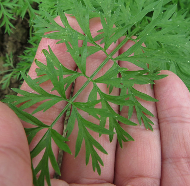 | 備註: 2015.3.18 中國植物誌: 野胡蘿蔔Daucus carota 二年生草本,高15-120厘米。莖單生,全體有白色粗硬毛。基生葉薄膜質,長圓形,二至三回羽狀全裂,末回裂片線形或披針形,長2-15毫米,寬0.5-4毫米,頂端尖銳,有小尖頭,光滑或有糙硬毛;葉柄長3-12厘米;莖生葉近無柄,有葉鞘,末回裂片小或細長。 复繖形花序,花序梗長10-55厘米,有糙硬毛;總苞有多數苞片,呈葉狀,羽狀分裂,少有不裂的,裂片線形,長3-30毫米;傘輻多數,長2-7.5厘米,結果時外緣的傘輻向內彎曲;小總苞片5-7,線形,不分裂或2-3裂,邊緣膜質,具纖毛;花通常白色,有時帶淡紅色;花柄不等長,長3-10毫米。果實圓卵形,長3-4毫米,寬2毫米,棱上有白色刺毛。花期5-7月。 胡蘿蔔Daucus carota var. sativa 本變種與原變種區別在於根肉質,長圓錐形,粗肥,呈紅色或黃色。 | |