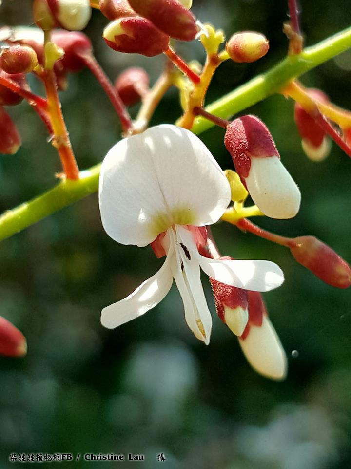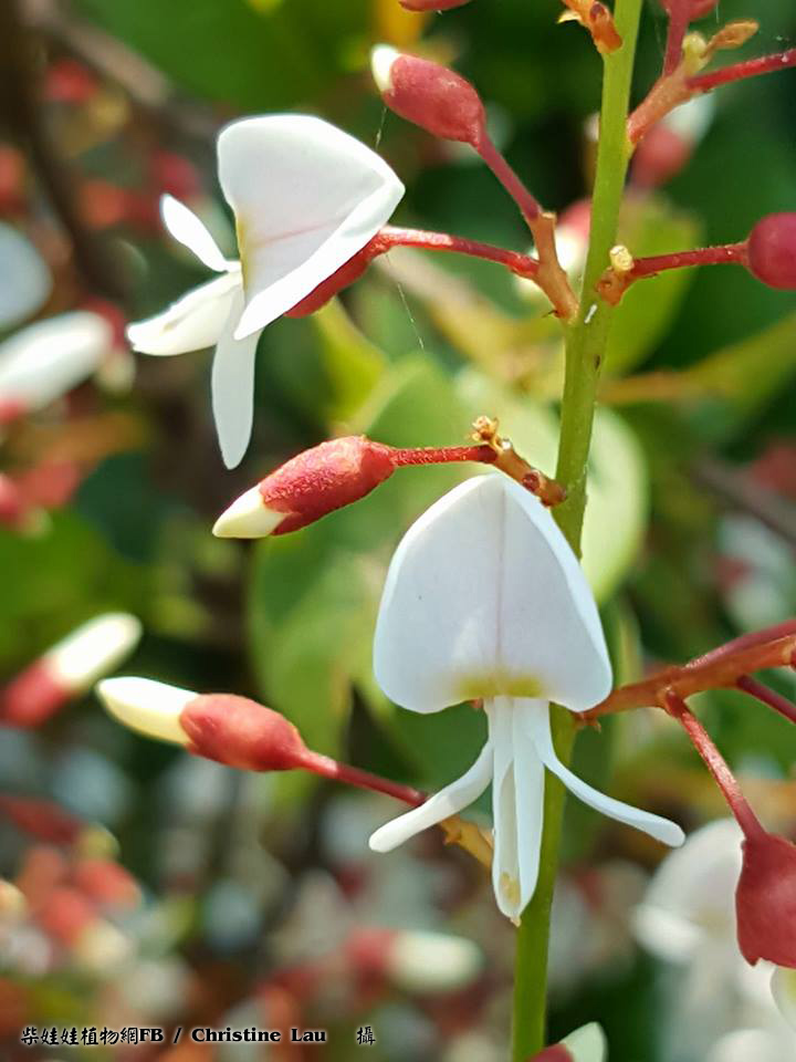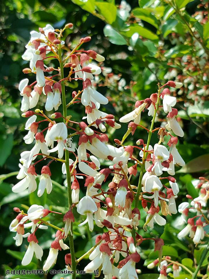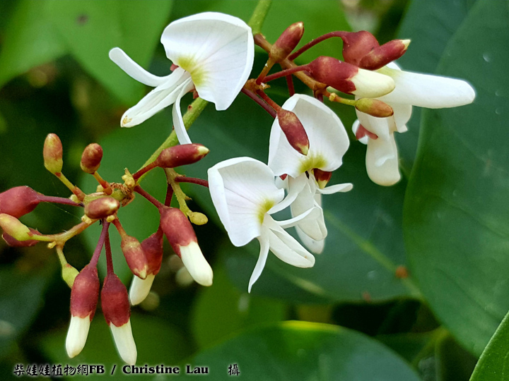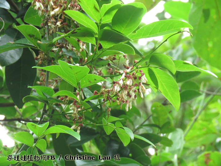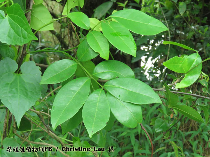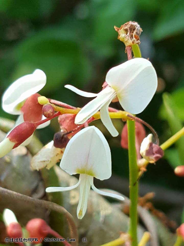 | 備註: 白花魚藤:葉尖微缺 亮葉中南魚藤fordii Oliv. var. lucida:葉尖沒有微缺 白花魚藤:果較短,且兩邊(腹和背)縫合處也有翅; 花萼暗紅色 魚藤D. trifoliata 果沒有此特徵; 花萼綠色 (*** 藤槐花萼都是綠色, 同魚藤好似. 魚藤葉複葉,藤槐單葉. ) ![]() | |