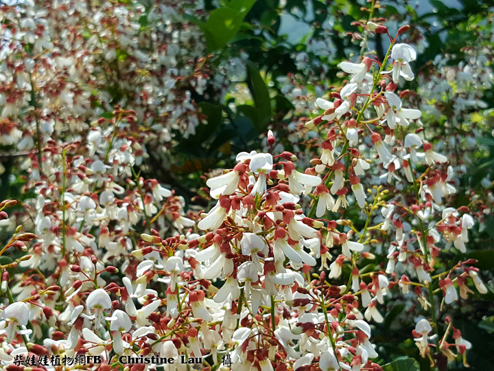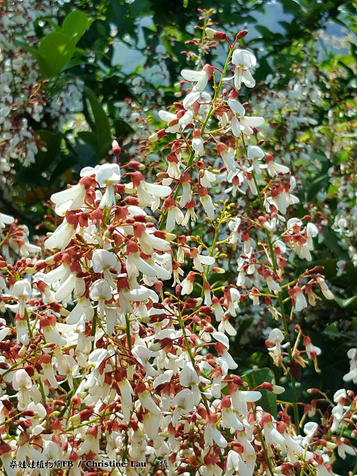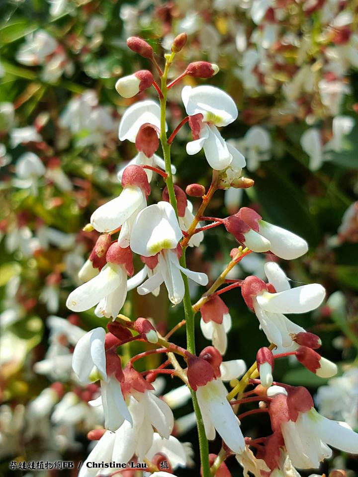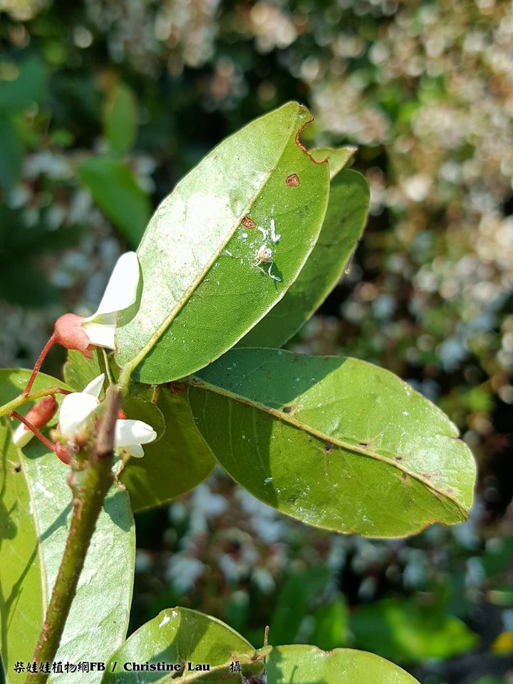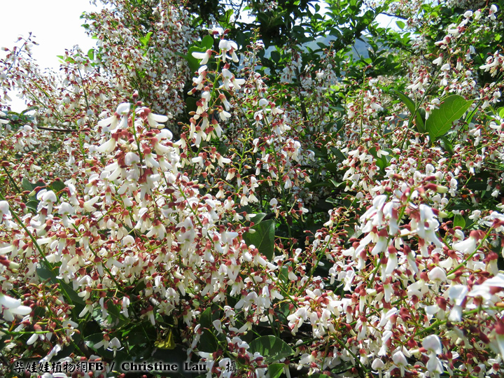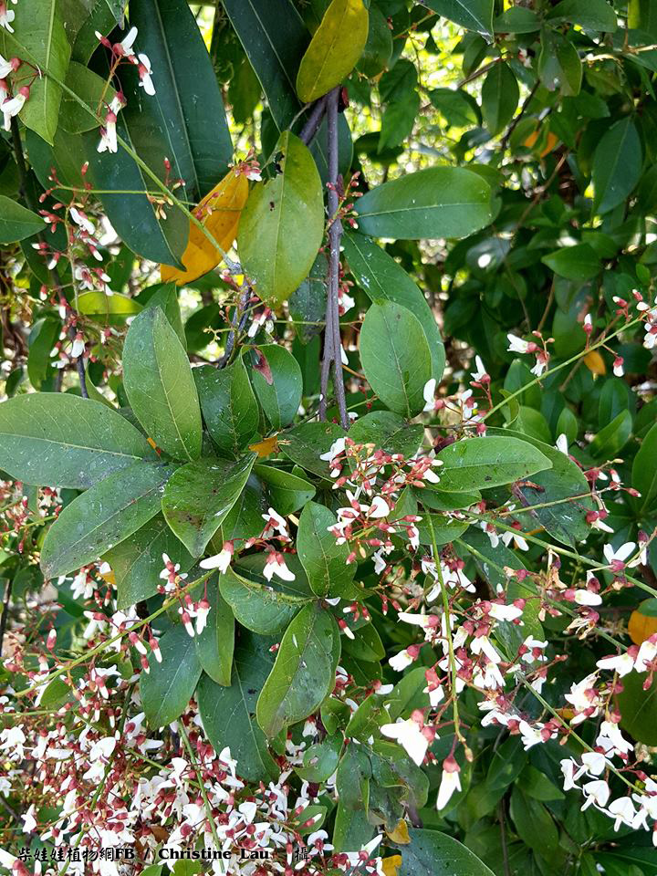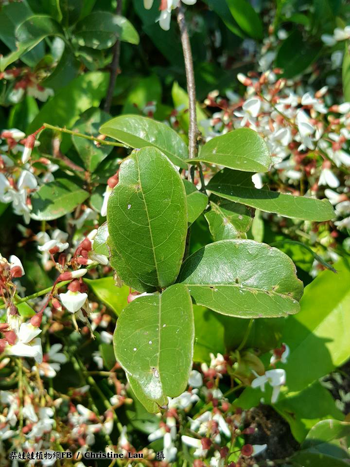 | 備註: 白花魚藤:葉尖微缺 亮葉中南魚藤fordii Oliv. var. lucida:葉尖沒有微缺 白花魚藤:果較短,且兩邊(腹和背)縫合處也有翅; 花萼暗紅色 魚藤D. trifoliata 果沒有此特徵; 花萼綠色 (*** 藤槐花萼都是綠色, 同魚藤好似. 魚藤葉複葉,藤槐單葉. ) ![]() | |