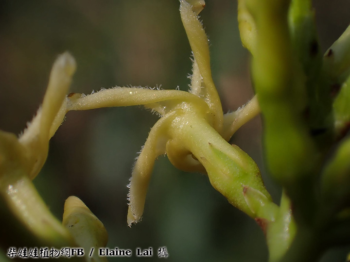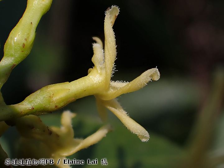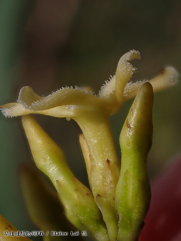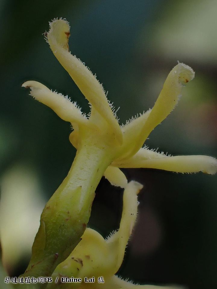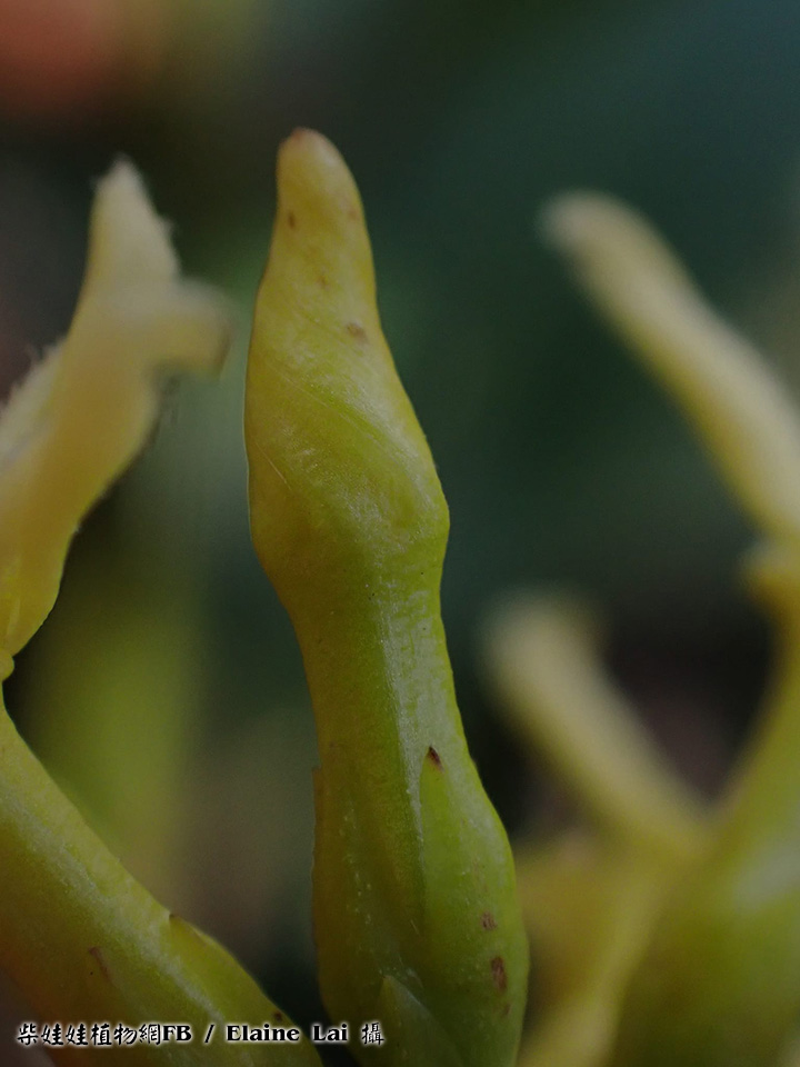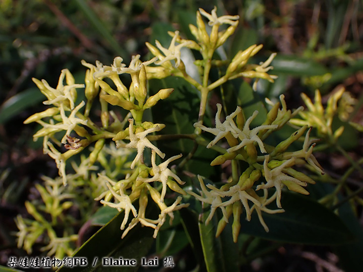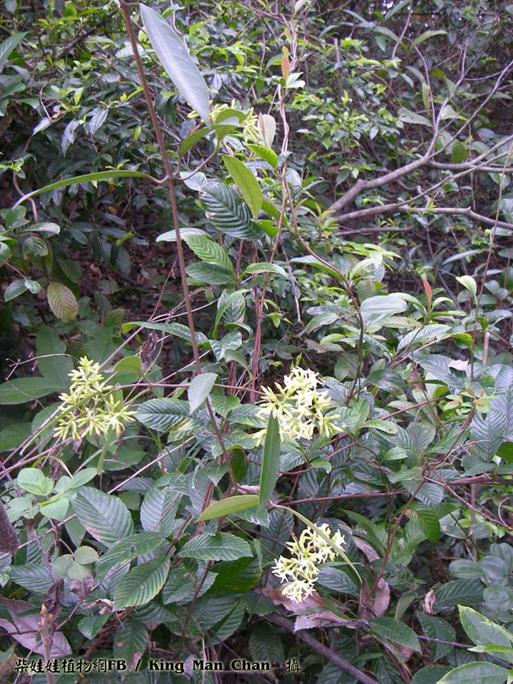 | 備註: 果好似羊角坳 香港原生木質藤本,生於疏林;全株有乳汁,單葉對生,有葉柄;聚繖花序頂生,花冠青黃色或白色,花冠裂片向後扭捲,花期 3 - 5月;蓇葖果成雙而生。source from 南國群芳譜 深圳植物誌: 木質藤本,長達10m,除花冠外全株無毛。枝條黑灰色。葉柄長0.5-2cm;葉片窄長圓形或窄卵圓形,長4-15cm,寬1.2-5cm,基部楔形,先端漸尖,側脈每邊有6-12條,乾時兩面橫皺。聚傘圓錐花序頂生或腋生,長5-10cm,寬3-12cm,具多數花;花序梗長1-14cm;苞片卵形,長2-3mm;花梗長1.5-2mm;小苞片2,與苞片同形,但較小,長1-1.5mm,生於花萼基部;花萼裂片卵形,長2-3mm;花冠白色或淡黃白色,花冠筒長4-5mm,內面疏被柔毛,喉部微收縮,裂片窄條形,微呈鐮刀狀,長約5mm,寬約1.5mm,上面疏被短柔毛;雄蕊著生在花冠筒基部;花盤杯狀,先部5淺裂或全緣,緊貼在子房周圍;子房無毛,花柱短,柱頭圓錐狀,先端2裂。蓇葖果雙生,極叉開,下部膨大呈卵球狀,向先端漸狹,長8-10cm,最寬處直徑2.5-3cm。種子棕黑色,具長喙,喙長2cm,寬6mm,喙先端具長約6cm的種毛。花期:4-11月。果期:6-12月。 FOC: Lianas to 10 m, glabrous[全株無毛] except for corolla[除了花冠]. Branches pale gray. Petiole 0.5-2 cm[柄長0.5-2CM]; leaf blade deep green adaxially, lighter abaxially, narrowly oblong to narrowly ovate, 3-14 X 1.2-5 cm, papery or somewhat leathery; lateral veins 6-12 pairs[側脈6-12對], usually wrinkled in dry state. Cymes paniculate, terminal or axillary, 3-26 X 3-13 cm, long pedunculate. Sepals ovate, 2-3 mm. Corolla white or yellowish green, pilose inside, tube 3-4.5 mm; lobes falcate, narrowly oblong, as long as or shorter than tube. Stamens inserted at base of corolla tube; disc cup-shaped, shallowly 5-lobed or entire, attached to ovaries. Follicles narrowly ellipsoid, dilated at base, 8-13 X 1.6-3 cm. Seeds tawny, beaked, ca. 2 cm x 6 mm, coma ca. 6 cm. Fl. Apr-Nov. | |
