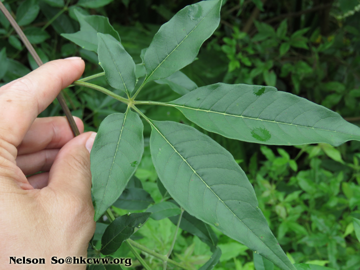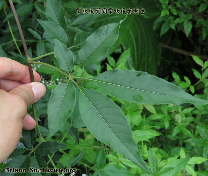 | 特別特徵: | 掌狀複葉對生 |