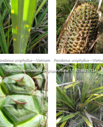 | 備註: Reference Photos 這物種在中國植物誌(FRPS)、Flora of China(FoC)、Flora of Hong Kong (FoHK)的描述都有問題,這物種的生長形態其實並不是有主幹的喬木。 Pandanus urophyllus Hance. In: J. Bot. 13: 68. (1875) 1. Henry F. Hance於1875時的發表原文 2. Benjamin C. Stone 在Flore du Cambodge du Laos et du Viêt-Nam (1983) 負責的PANDANACEA 露兜樹科 的詳細描述跟檢索表 3. Type specimen collected in Hong Kong 4. Prof. Richard Corlett 於1994年時HKU Newsletter of the Department of Ecoloy & Biodiversity撰寫的一份短文 5. 胡秀英教授在1969於香港大埔滘採集的標本 | |